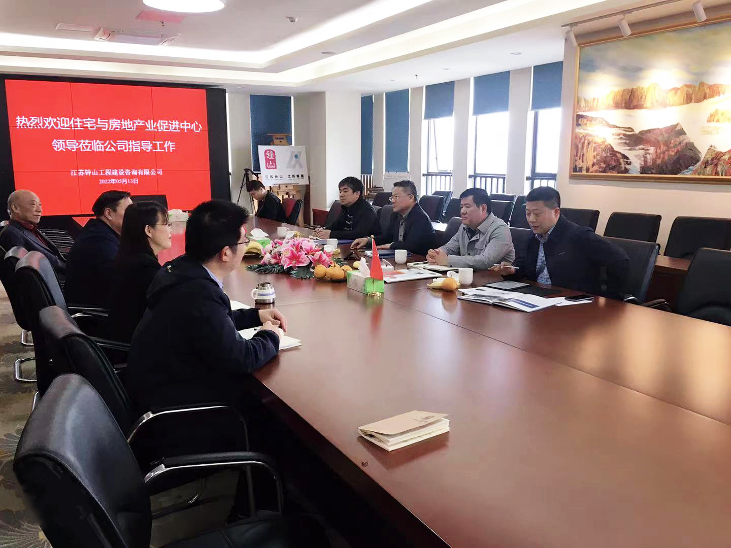 2022年5月13日上午,江苏省住建厅住宅与房地产促进中心徐盛发主任带队一行4人莅临公司指导工作。董事长戴子扬、总经理李小菊、副总经理代少华、顾桂林、李昌庆在公司会议室参加接待。