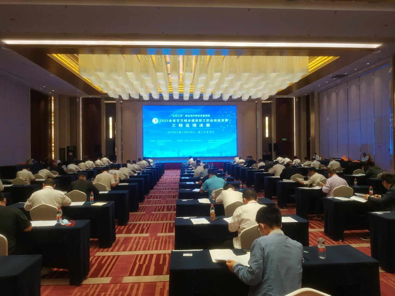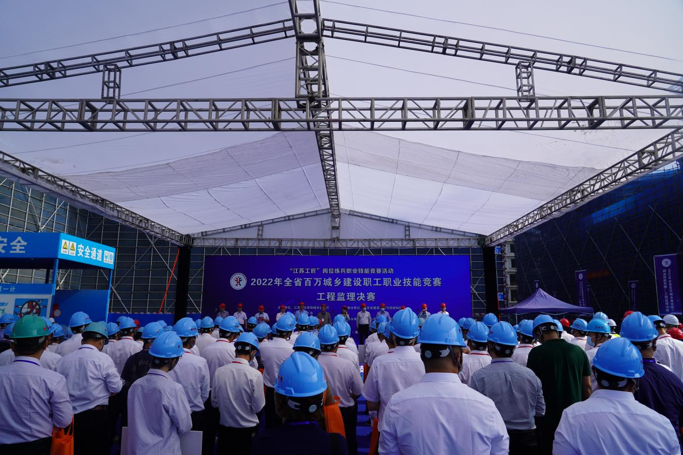 9月28至29日,由江苏省住房和城乡建设厅、江苏省总工会和江苏省教育厅联合主办,江苏省人力资源和社会保障厅指导,江苏省建设监理与招投标协会承办,中建八局第三建设有限公司协办的2022年江苏省百万城乡建设职工职业技能竞赛工程监理决赛在南京市溧水区举行。中国建设监理协会会长王早生,江苏省住房和城乡建设厅副厅长王学锋,南京市城乡建设委员会副主任宋刚,中国建设监理协会副秘书长温健,江苏省住房和城乡建设厅建筑市场监管处处长汪志强,江苏省住房和城乡建设厅工程质量安全监管处处长蒋惠明,江苏省建设工会工作委员会副主任佘玉龙,江苏省建设监理与招投标协会会长陈贵,江苏省建设监理与招投标协会秘书长曹达双和中建八局第三建设有限公司党委书记、董事长张述坚等领导、嘉宾及来自全省13个设区的领队、联络员、裁判员、参赛选手等共150余人参加了开幕式,开幕式由江苏省建设工会工作委员会主任齐朝辉主持。