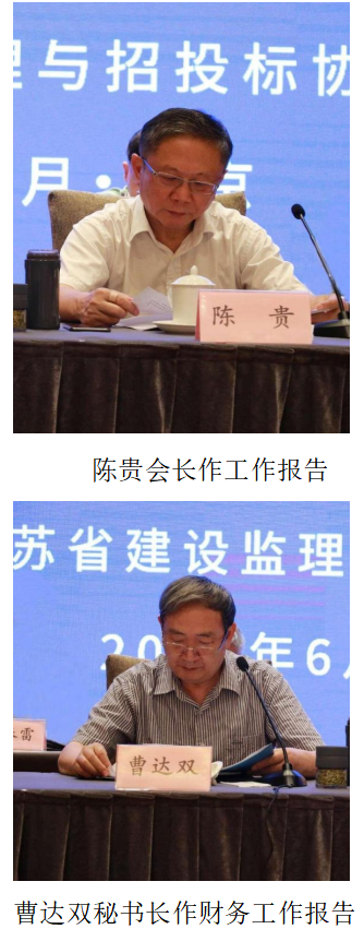 2023年6月25日,江苏省建设监理与招投标协会四届三次会员代表大会暨四届五次理事会在南京市顺利召开,会长陈贵作协会2022年度工作报告,并通报了2023年工作要点,秘书长曹达双作协会2022年度财务工作报告,来自各地260余名会员代表参加了本次会议,会议由副会长戴子扬主持。